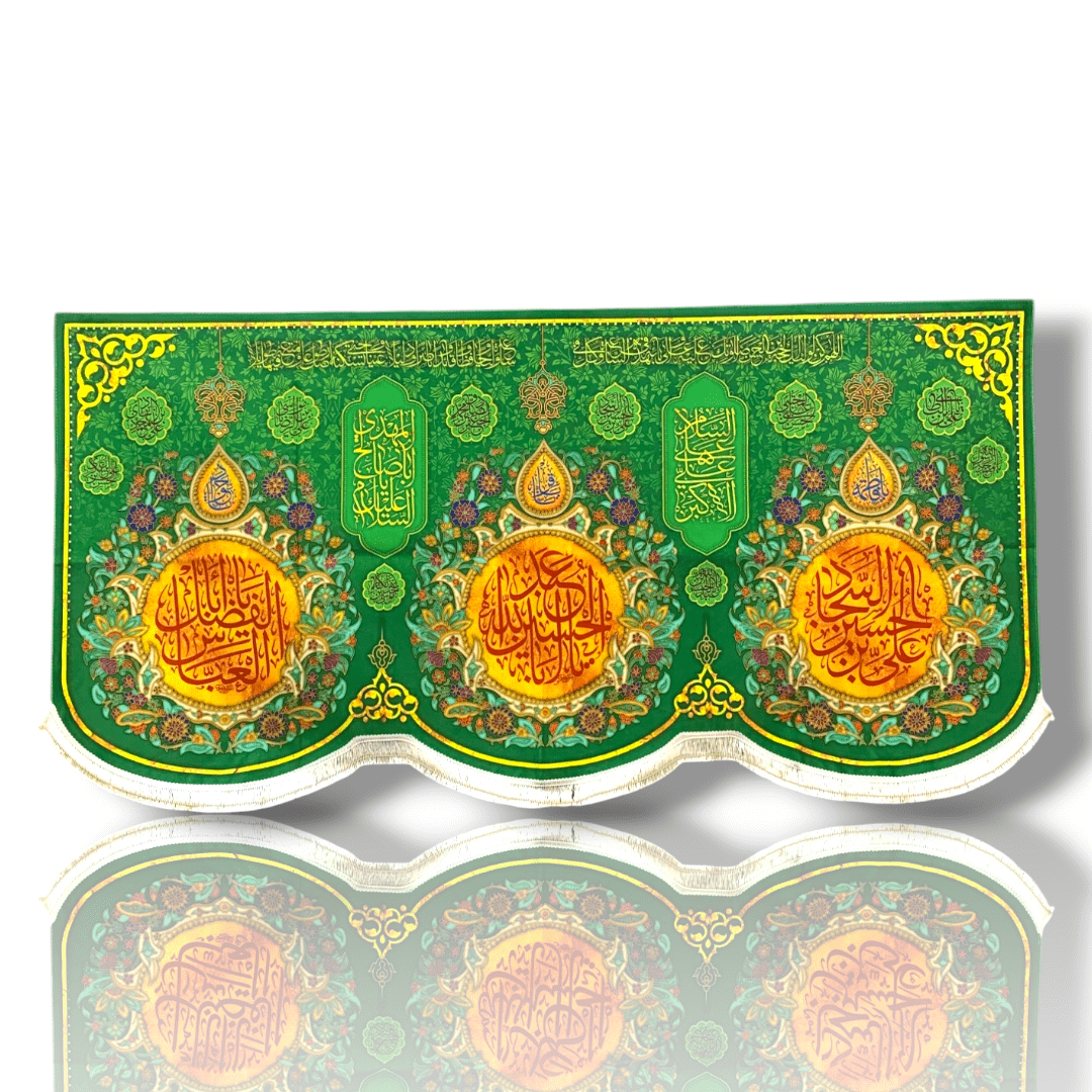 Multi Imam a.s Iran Parcham – Velvet Banner – 140X70cm – Imam Hussain a.s / Maula Abbas a.s / Imam Sajjad a.s